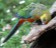The male Red-Capped Parrot is a gaudy medium-sized parrot, dark green above with a red cap, lime green cheeks and rump, blue-purple breast and red underparts. The female is duller, with a greenish crown and cheeks and pale mauve underparts. Both have a distinctive long pale bill, with a long upper mandible, giving them the common name of Hookbill. They are known as King Parrots in WA. Their flight is undulating and fluttering. When disturbed, they will fly to the top of nearby trees and perch in a typical upright stance, calling loudly.