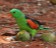 Male Australian King-Parrots are the only Australian parrots with a completely red head. Females are like males except that they have a completely green head and breast. Both sexes have a red belly and a green back, with green wings and a long green tail. King parrots are normally encountered in pairs or family groups.