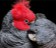 The Gang-Gang is a small, stocky cockatoo with a wispy crest, large, broad wings and a short tail. The adult male has a distinctive scarlet red head and crest, with the rest of the body slate-grey. The adult female has a dark grey head and crest, with the feathers of the underparts edged pink and yellow. In both sexes, the feathers of the upperparts and wings are faintly edged pale-grey, giving a barred appearance, with females having additional yellow edging to their feathers that increases this barred effect. Young birds are like the adult female, with young males differing by having a red crown and forehead and a shorter, less twisted red crest. Gang-gangs are gregarious but relatively quiet cockatoos and may usually be in food trees by the sounds of feeding and falling debris.